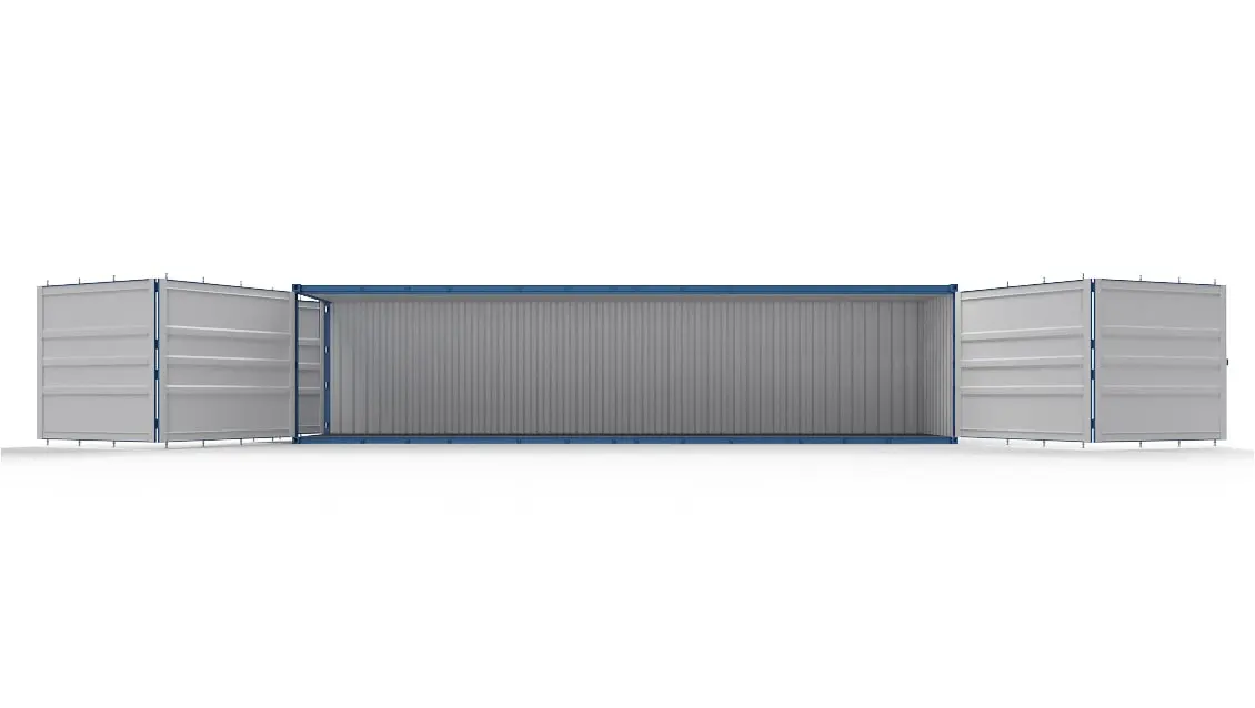 The 40ft High Cube Open Side container is a big one with four large side doors. Ideal for loading and unloading complex cargo. You can choose to open just the middle side doors, or all four simultaneously. This makes loading and unloading incredibly easy! The 40ft High Cube Open Side container complies with ISO standards and is CSC certified. You can purchase or rent this container from Fairdeal Containers. Ask our specialists for a competitive quote! Specifications